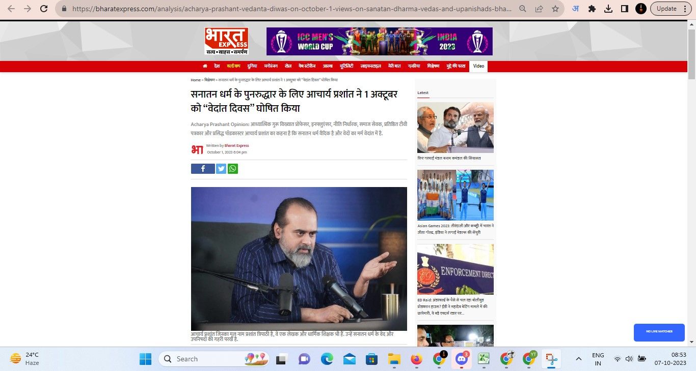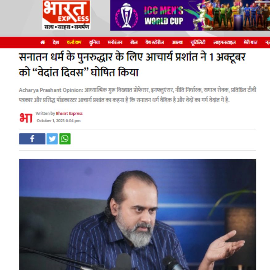 सनातन धर्म के पुनरुद्धार के लिए आचार्य प्रशांत ने 1 अक्टूबर को “वेदांत दिवस” घोषित किया