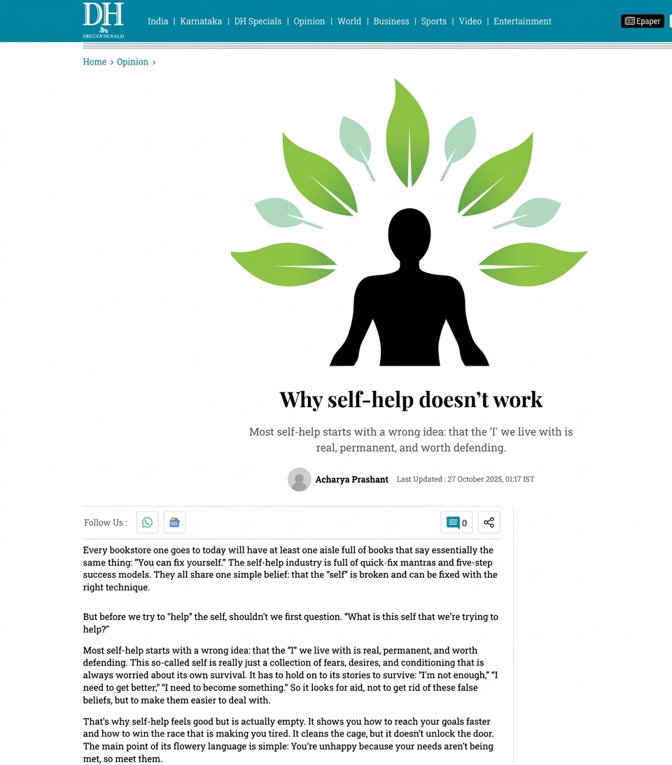 Media Articles Deccan ChronicleDeccan Chronicle | Holi: What the Fire Was Really Meant to Burn ~ Acharya Prashant's article in Deccan Chronicle 02 Mar 2026 [1] [2] |