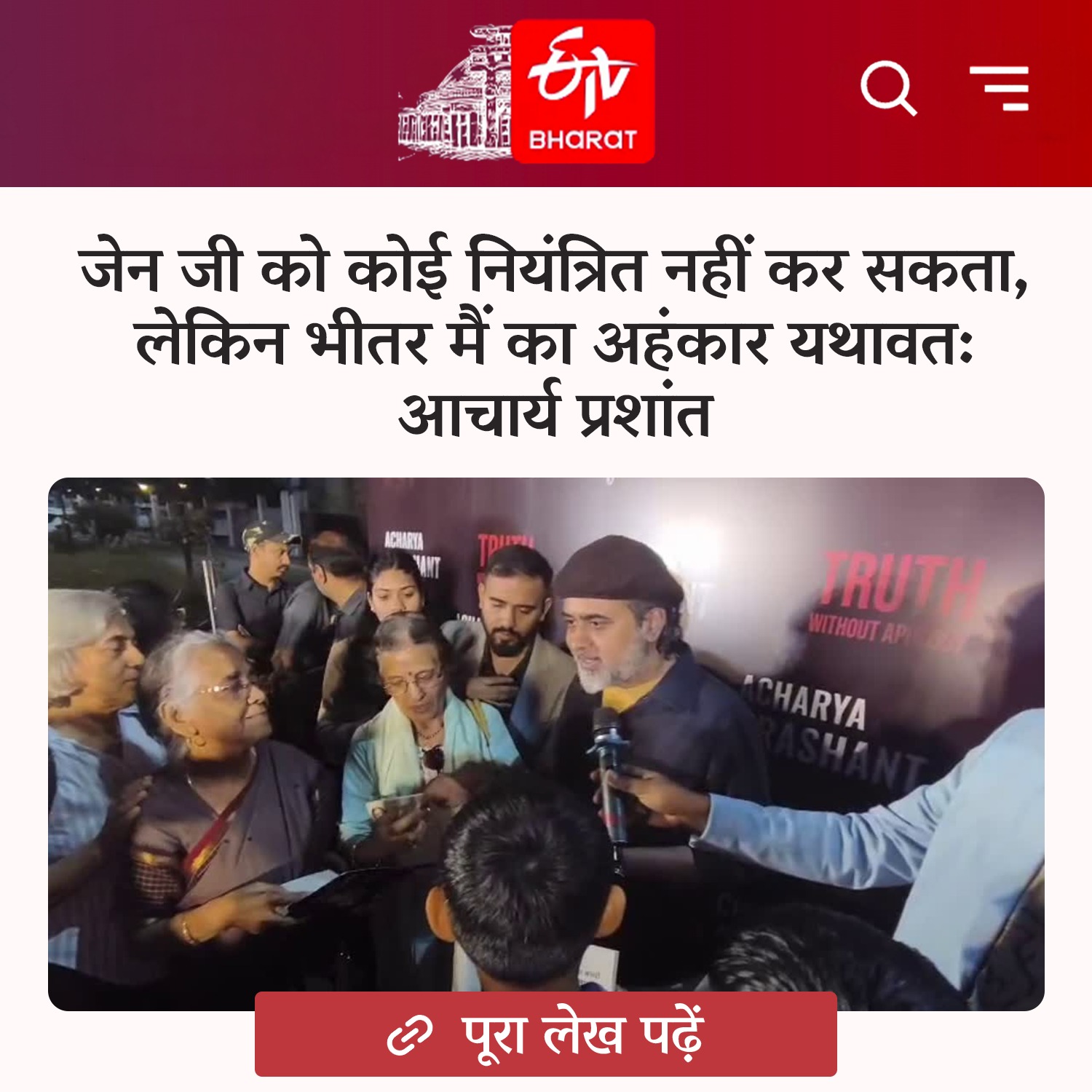 Bytes and Media Coverages NewsamacharTV24NewsamacharTV24 | Acharya Prashant dwara ek bhavya gyaan-samvaad evam sanskritik karyakram ka aayojan. 16 Feb 2026 [1] |