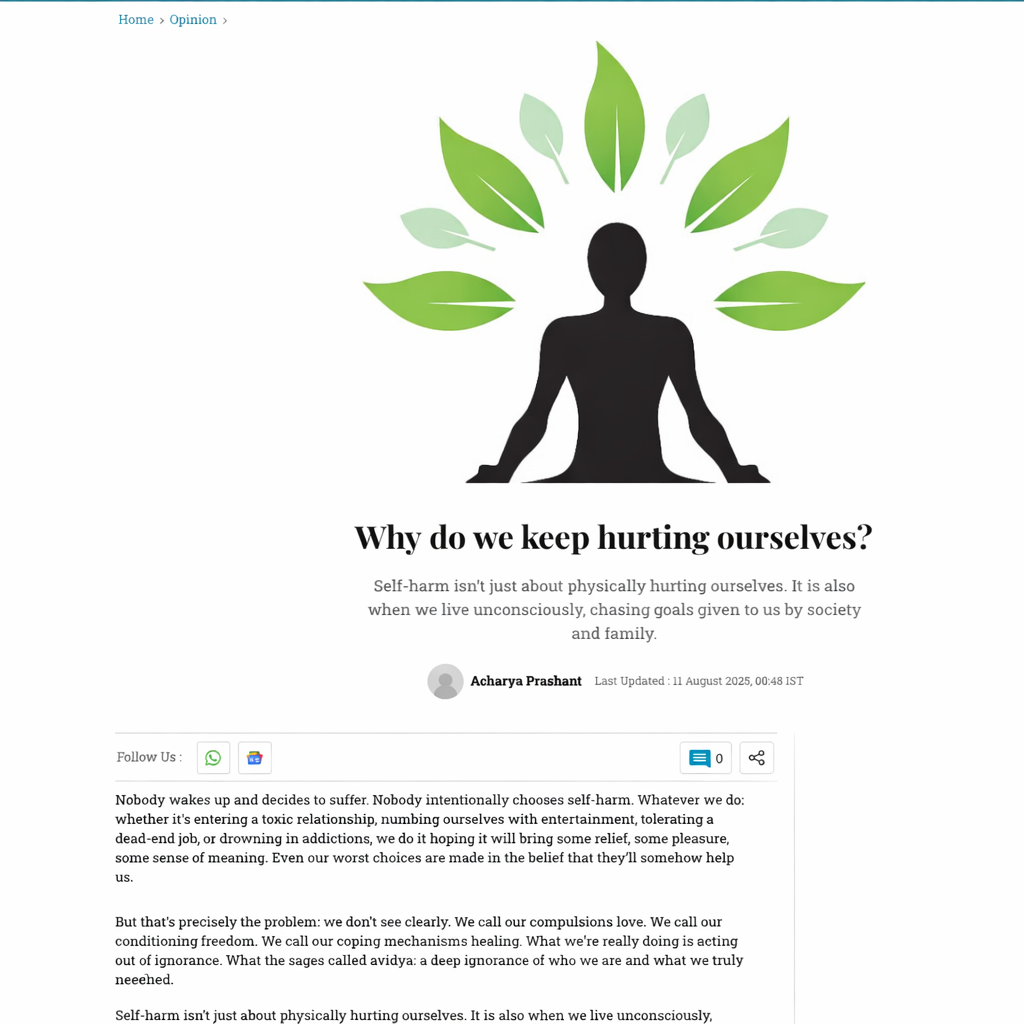 Bytes and Media Coverages Prameya News7Prameya News7 | Look at yourself in the mirror first… the solution will be found. But many people do not even know themselves. — Acharya Prashant 11 Jan 2026 [1] |
