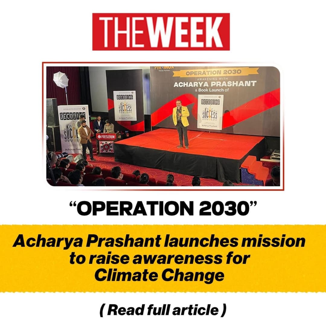 Media The WeekThe Week | Acharya Prashant receives ‘Most Impactful Environmentalist’ award on World Environment Day 05 Jun 2025 [1] Operation 2030' Acharya Prashant launches mission to raise awareness for climate change 17 May 2025 [1] |