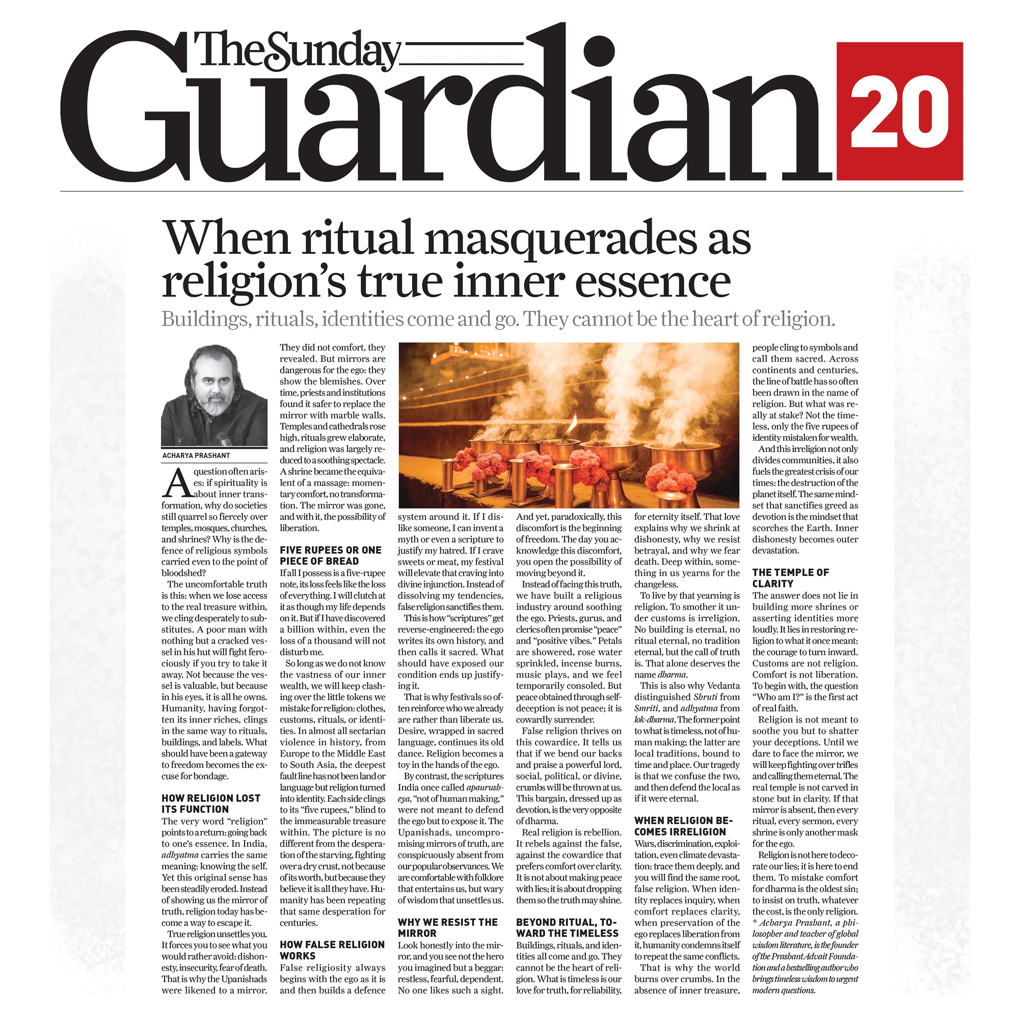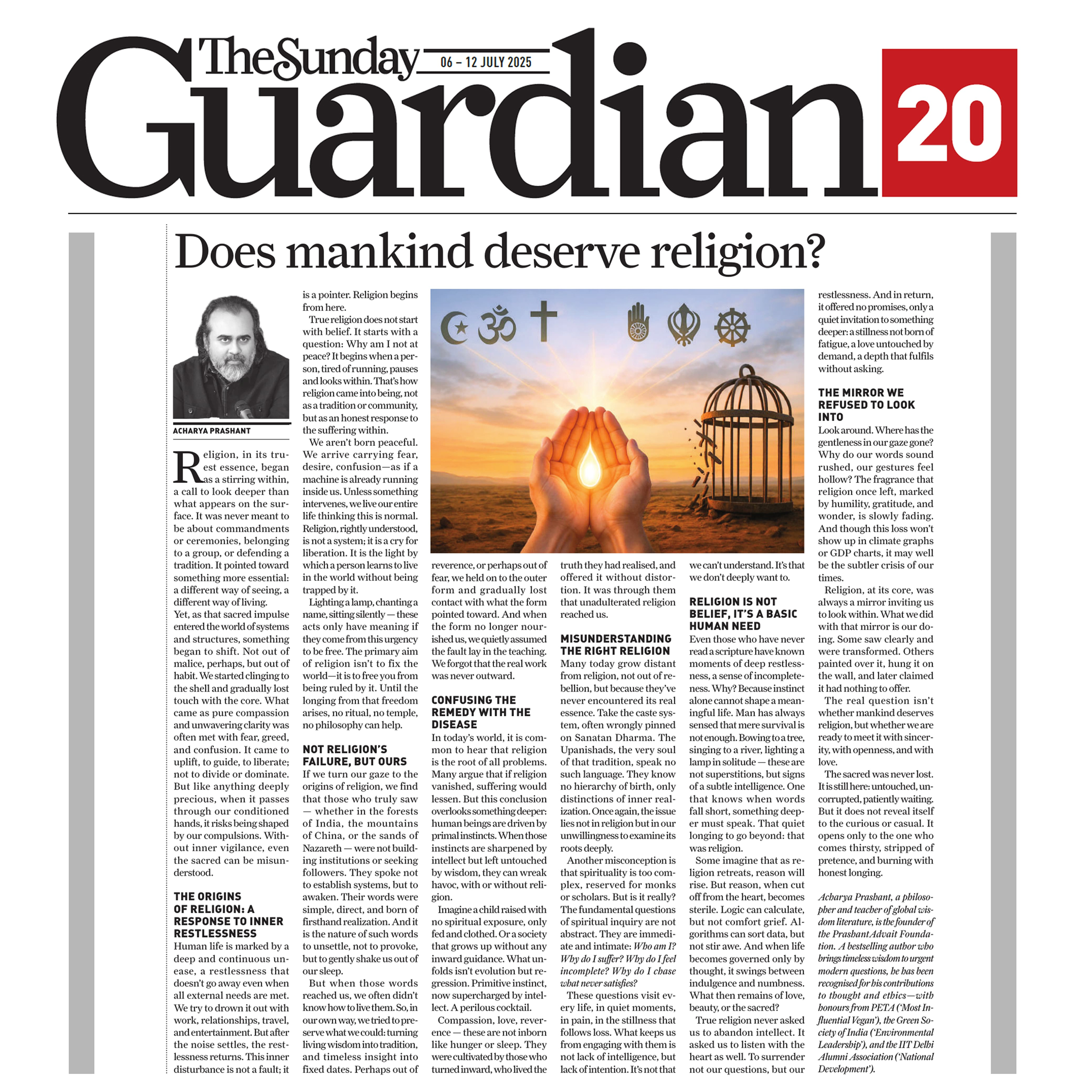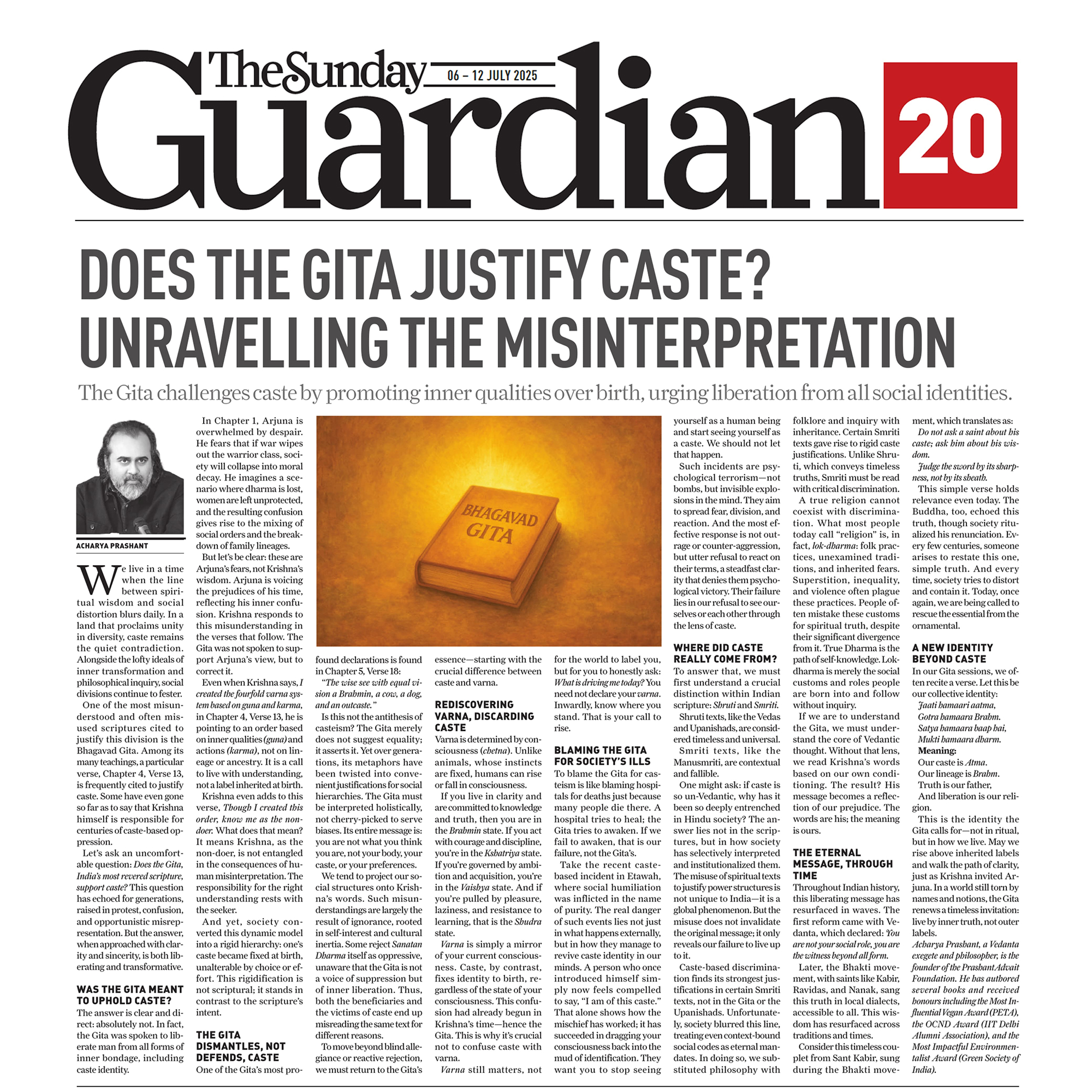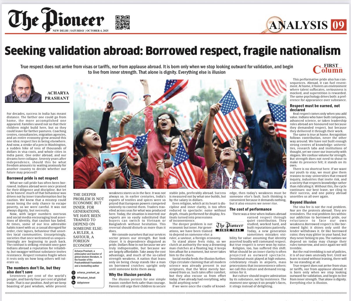 Media The Free Press JournalThe Free Press Journal | Acharya Prashant Featured Among the Top 5 Most Impactful Living Philosophers in 2025 19 Nov 2025 [1] [2] “After #1 On Amazon And Nielsen, ‘Truth Without Apology’ Now Dominates Flipkart Bestseller Charts” 24 Oct 2025 [1] [2] Free Press Journal - "Acharya Prashant: India’s Most Followed Philosophical Voice On Instagram" 20 Aug 2025 [1] [2] Seventeen Hours With The Gita: A Living Janmashtami Where PVR INOX Multiplexes Turned Into Temples Of Reflection 18 Aug 2025 [1] [2] |