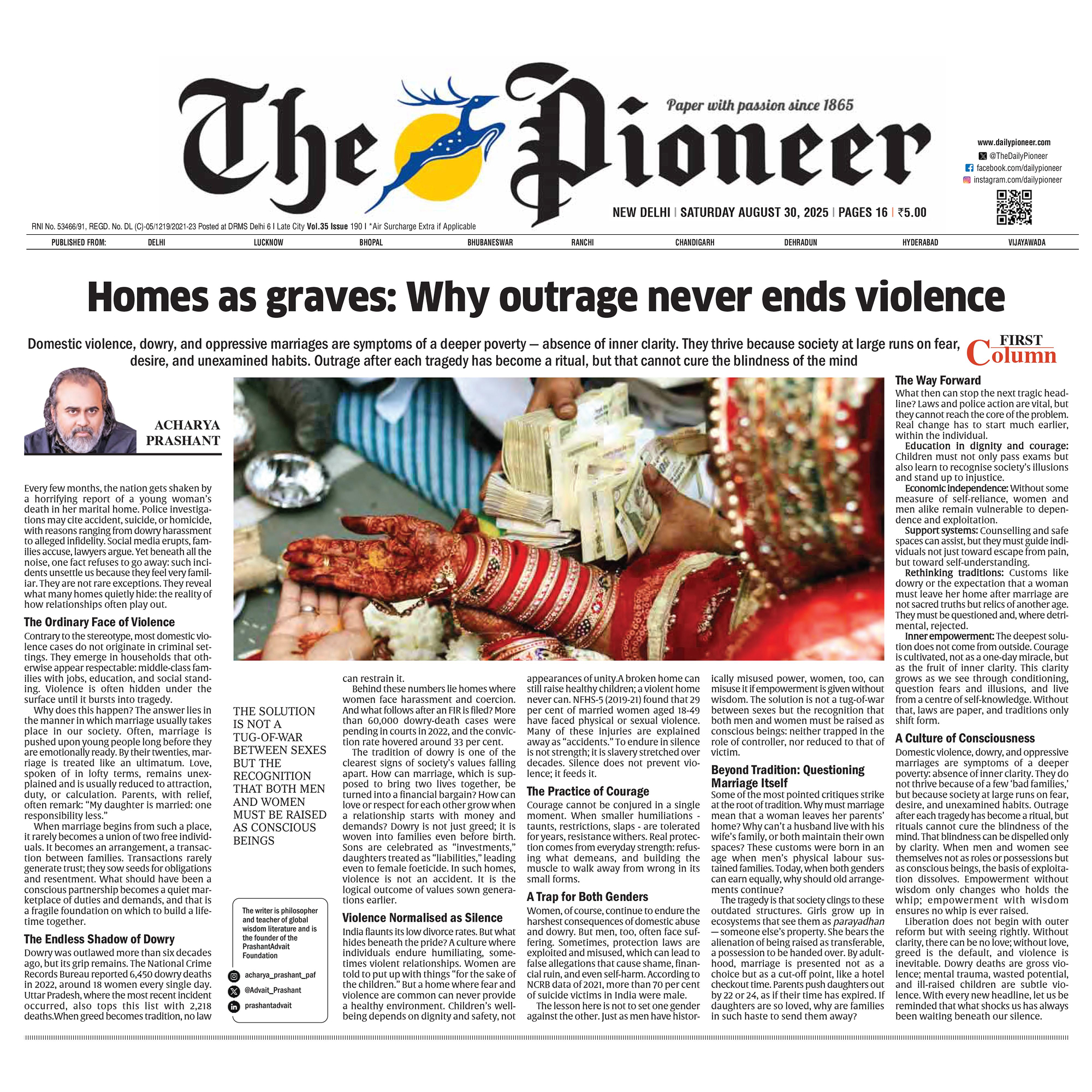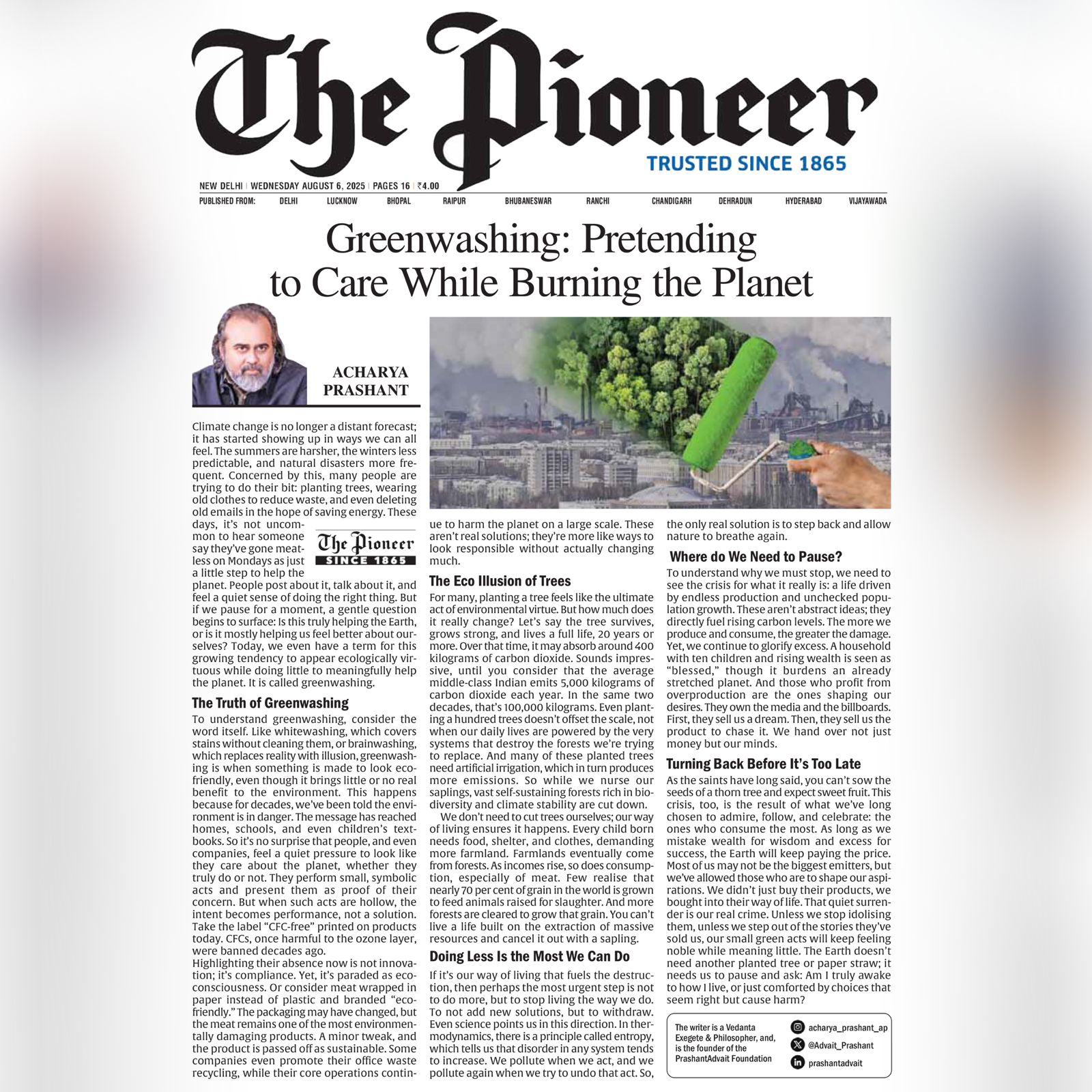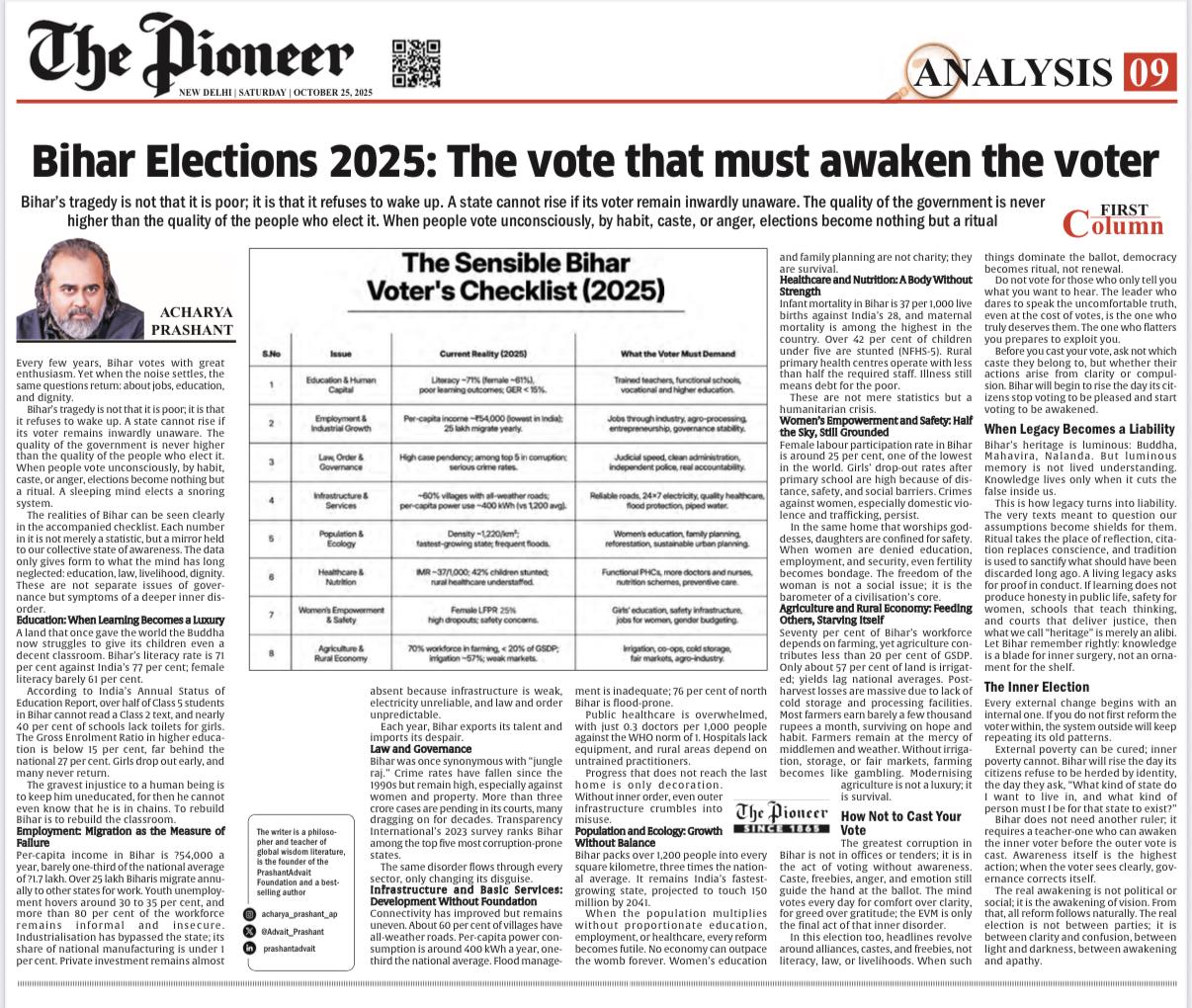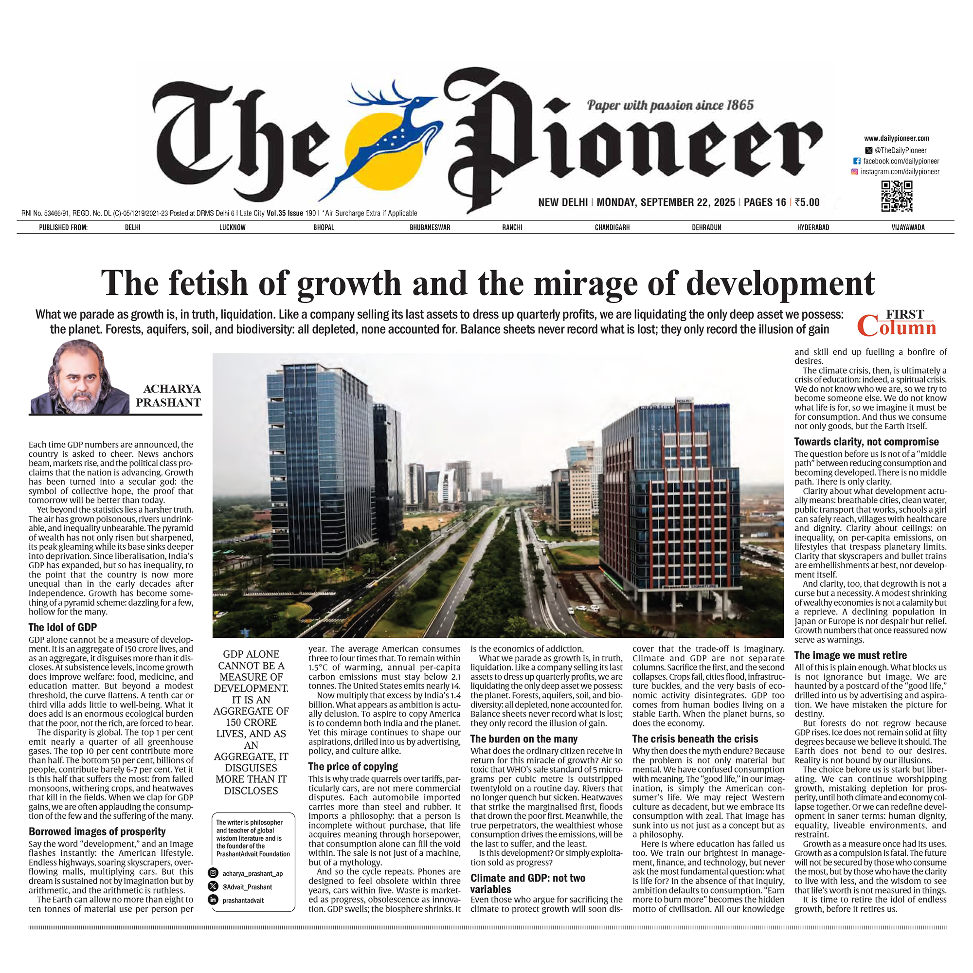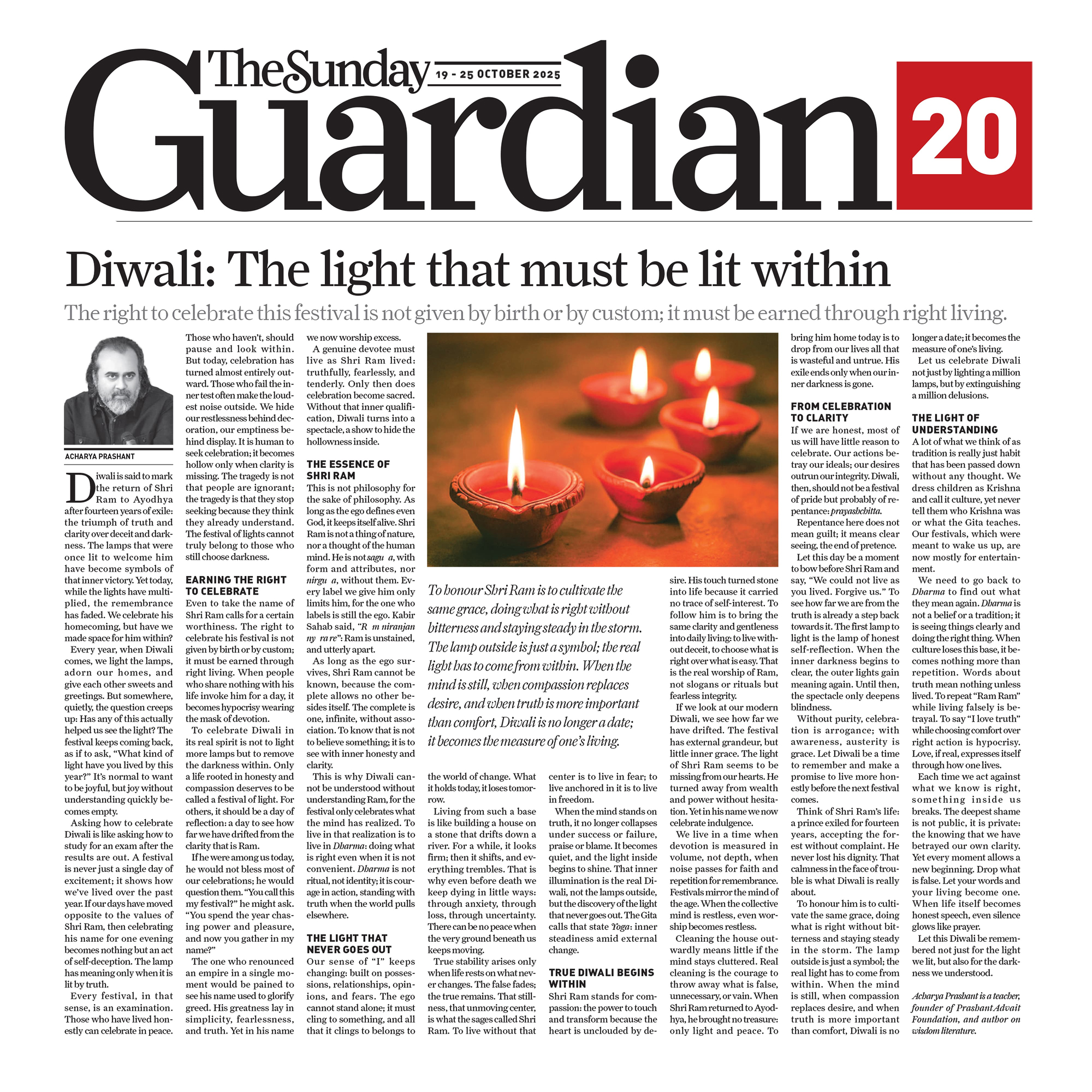 Media The Free Press JournalThe Free Press Journal | Acharya Prashant Featured Among the Top 5 Most Impactful Living Philosophers in 2025 19 Nov 2025 [1] [2] “After #1 On Amazon And Nielsen, ‘Truth Without Apology’ Now Dominates Flipkart Bestseller Charts” 24 Oct 2025 [1] [2] Free Press Journal - "Acharya Prashant: India’s Most Followed Philosophical Voice On Instagram" 20 Aug 2025 [1] [2] Seventeen Hours With The Gita: A Living Janmashtami Where PVR INOX Multiplexes Turned Into Temples Of Reflection 18 Aug 2025 [1] [2] |