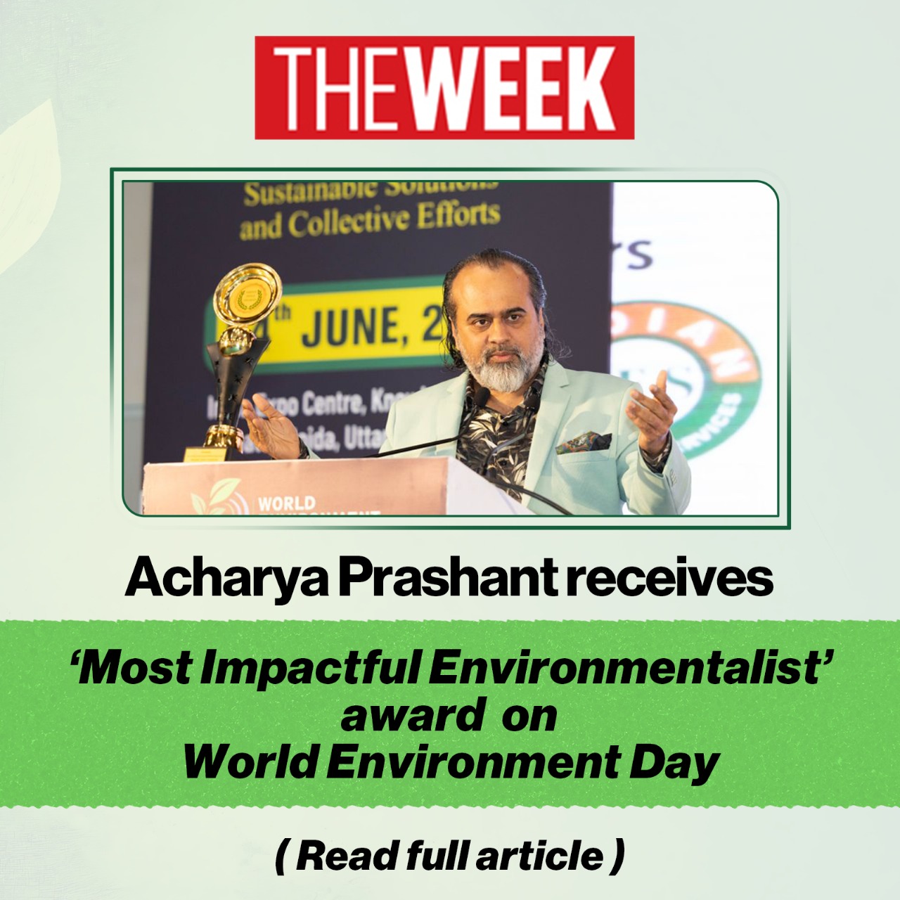 Media Acharya Prashant receives ‘Most Impactful Environmentalist’ award on World Environment DayAcharya Prashant receives ‘Most Impactful Environmentalist’ award on World Environment Day | |