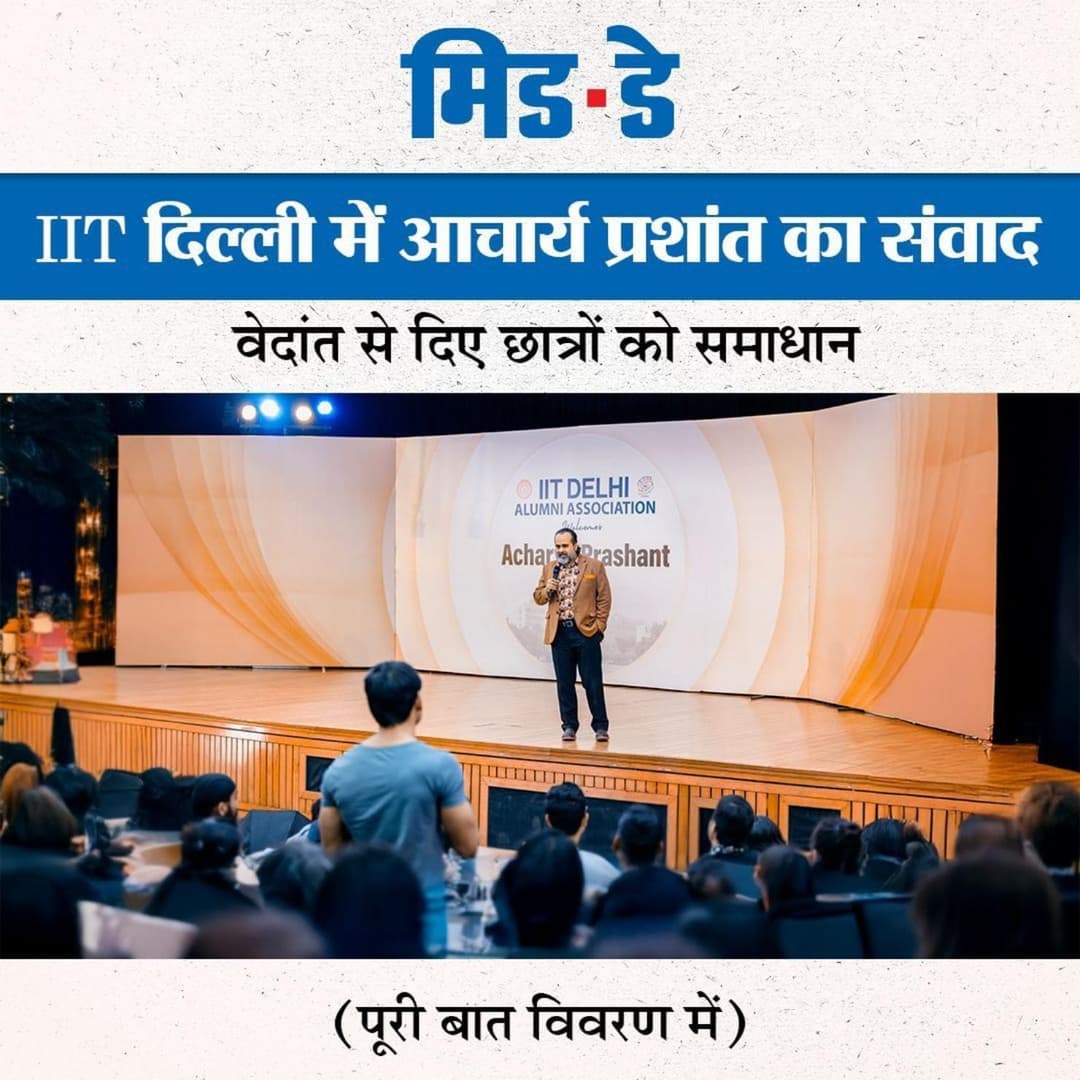 Media IIT दिल्ली में गूंजे वेदांत के स्वर, आचार्य प्रशांत ने छात्रों से साधा सीधा संवादIIT दिल्ली में गूंजे वेदांत के स्वर, आचार्य प्रशांत ने छात्रों से साधा सीधा संवाद | |