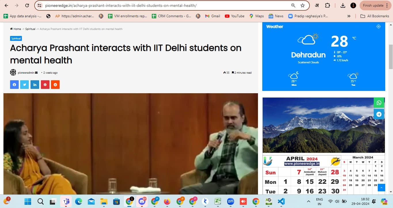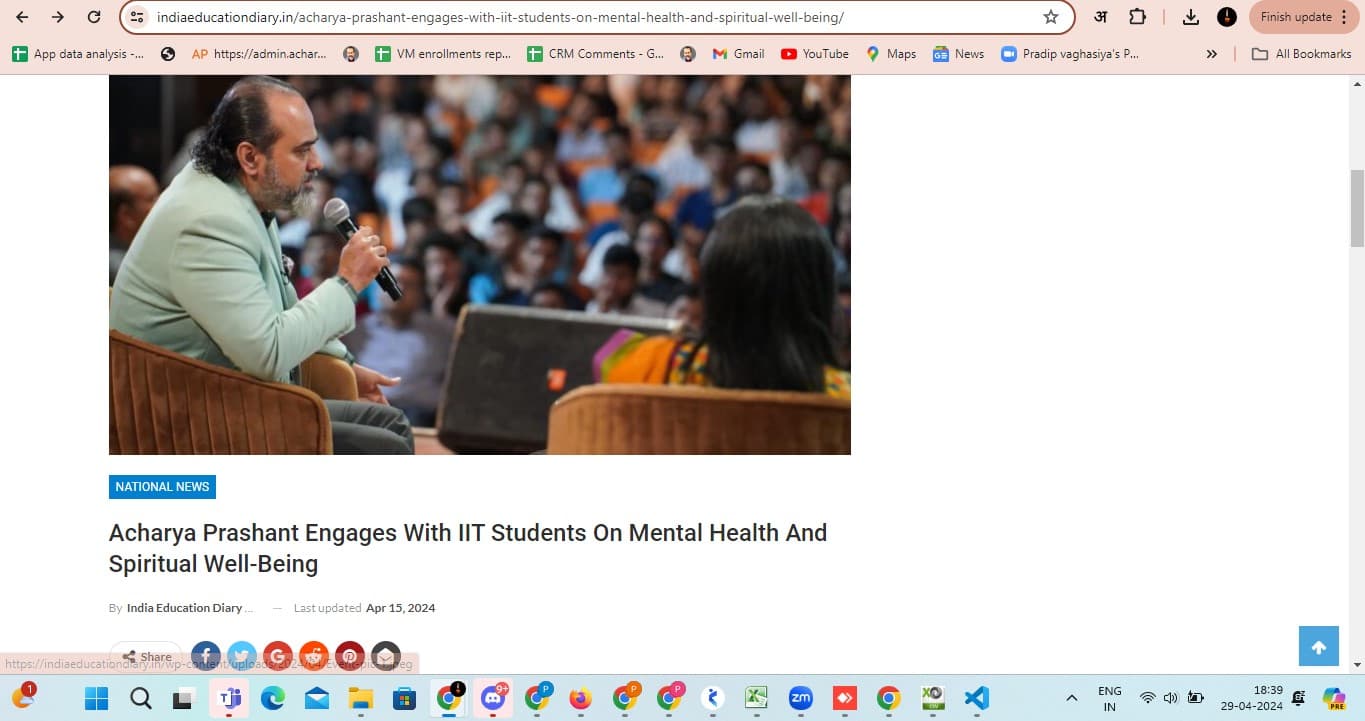 Media Acharya Prashant Engages with IIT Students on Mental Health and Spiritual Well-beingAcharya Prashant Engages with IIT Students on Mental Health and Spiritual Well-being | |