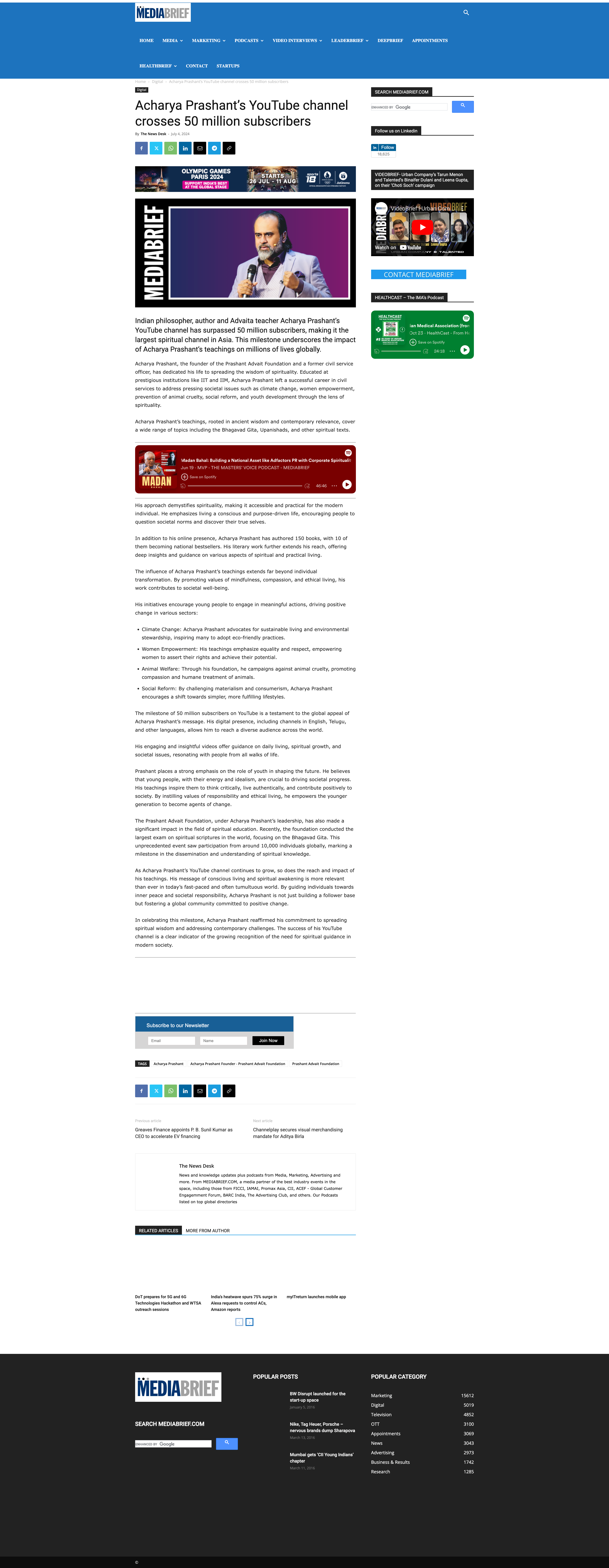 Media Acharya Prashant's Journey to YouTube StardomAcharya Prashant's Journey to YouTube Stardom | |