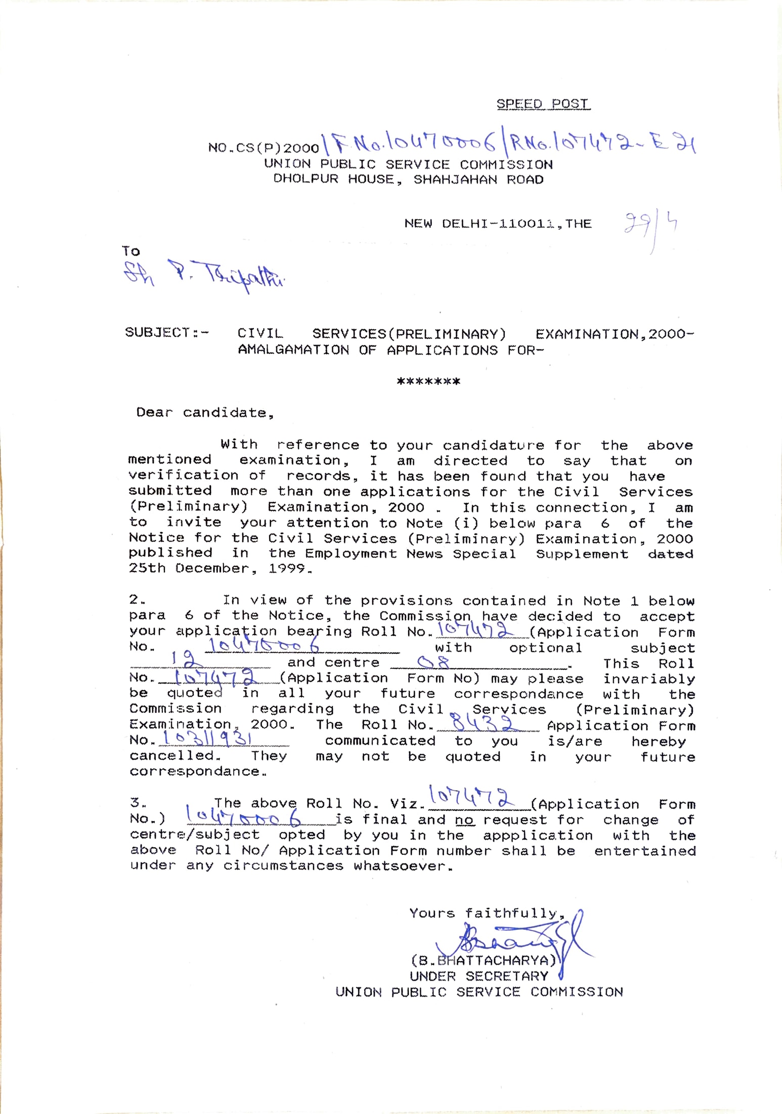 Received All India Rank 184 in Civil Services [Main] Examination, 2000 Received All India Rank 184 in Civil Services [Main] Examination, 2000 16 May 2001 [1] [1]