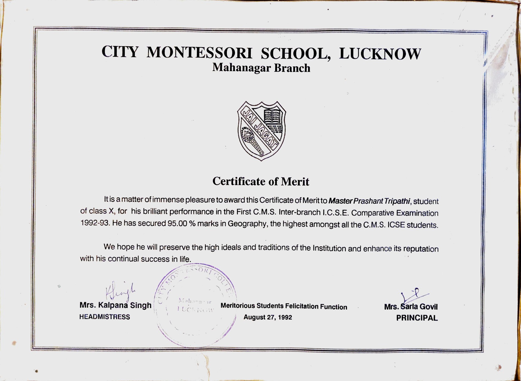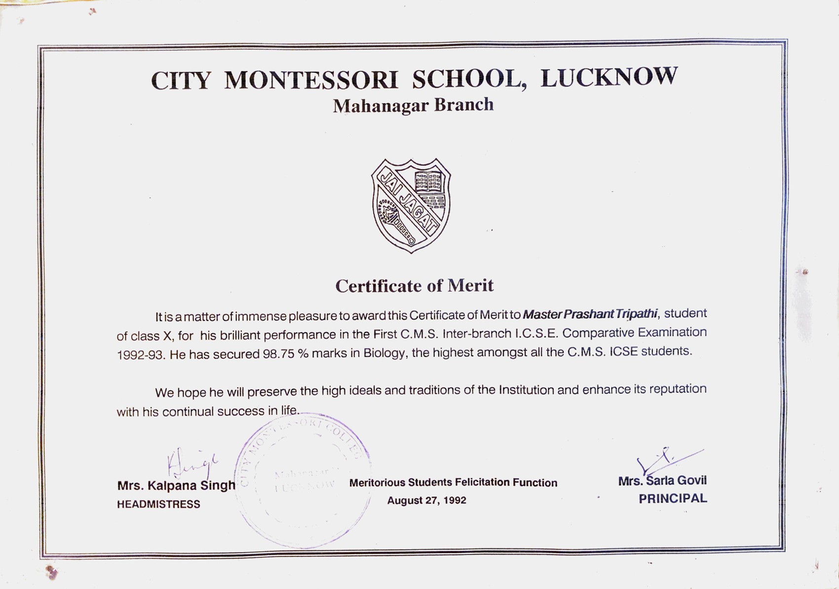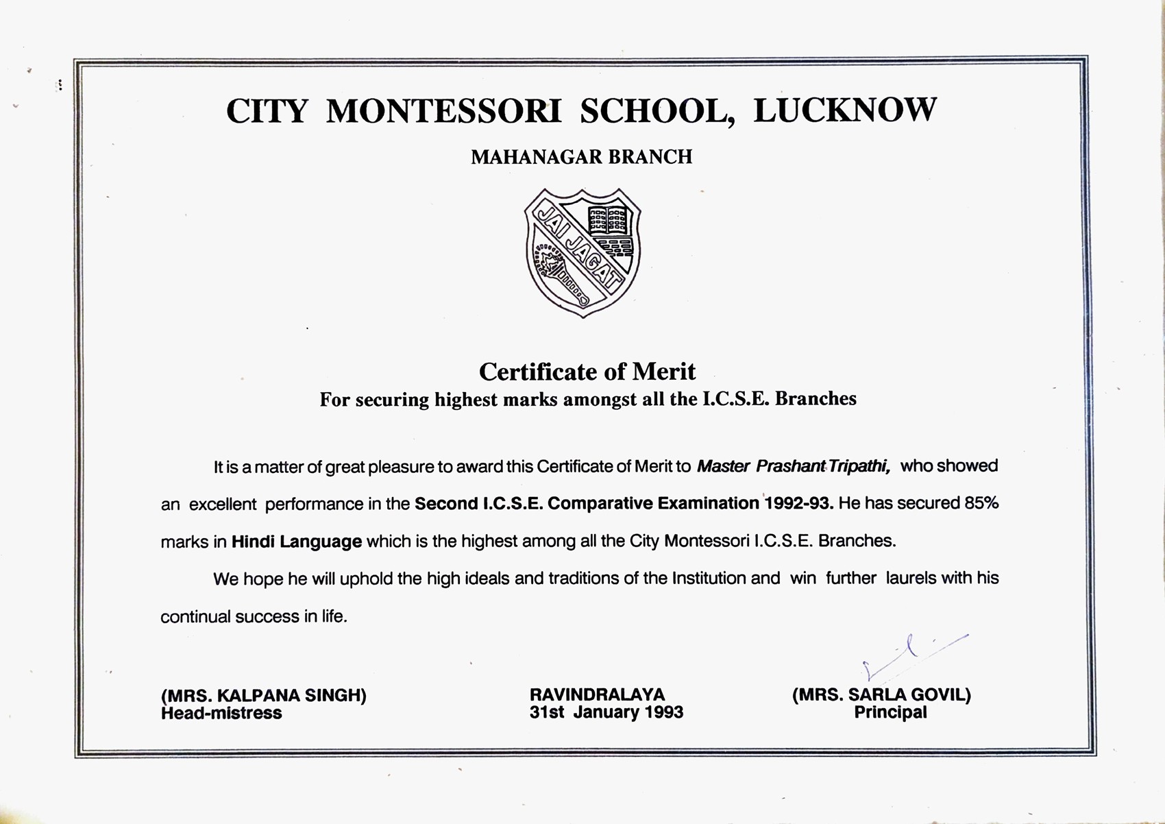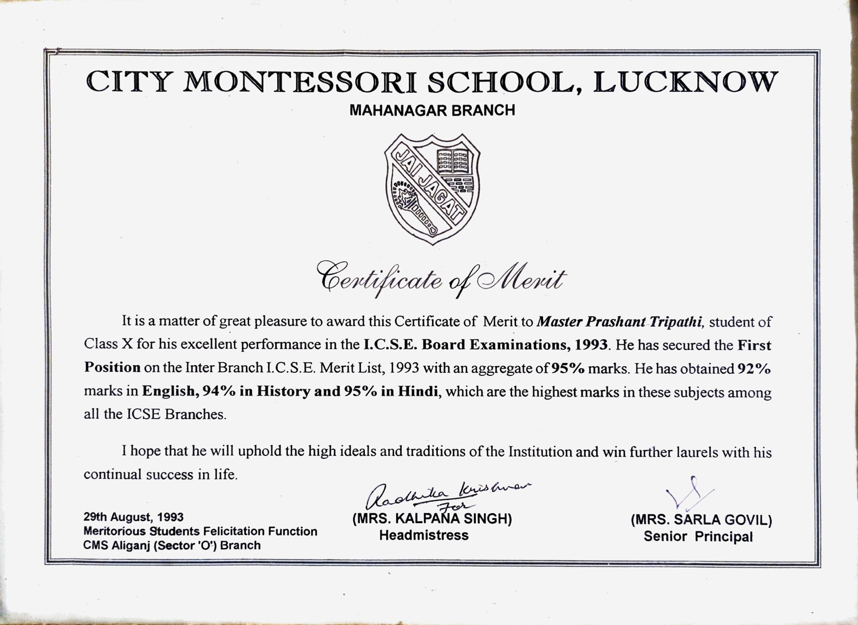Acharya Prashant secured first position on inter branch ICSE merit list.Acharya Prashant secured first position on inter branch ICSE merit list.30 Jun 1993 [1] [1] [2] [2]