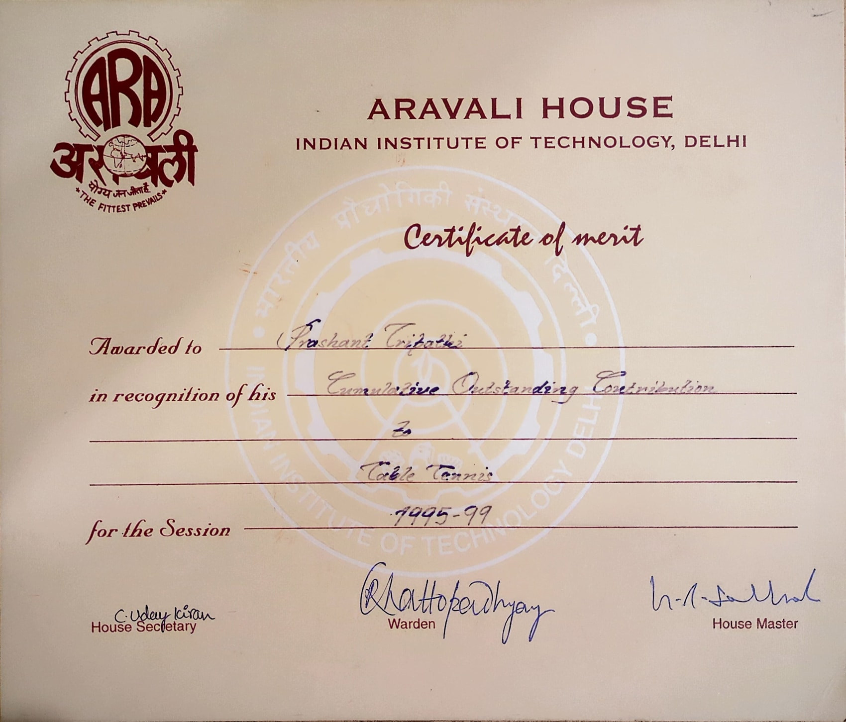 Cumulative outstanding contribution to Table Tennis in 95-99 -- Aravali House, IITD.Cumulative outstanding contribution to Table Tennis in 95-99 -- Aravali House, IITD.14 Aug 1999 [1] [1] [2] [2]