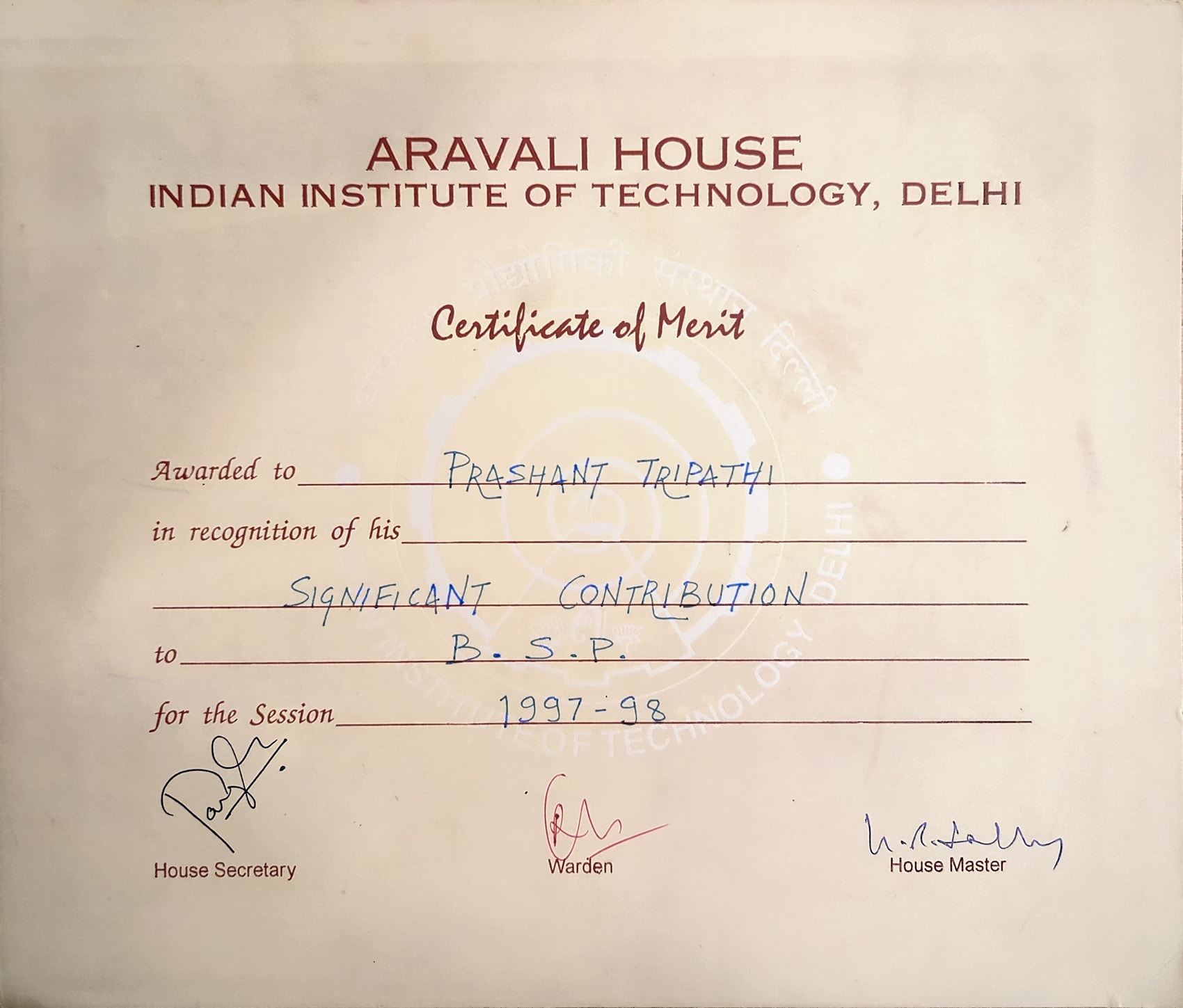 Significant contribution to B.S.P in 97-98 -- Aravali House, IITD.Significant contribution to B.S.P in 97-98 -- Aravali House, IITD.14 Aug 1998 [1] [1] [2] [2]
