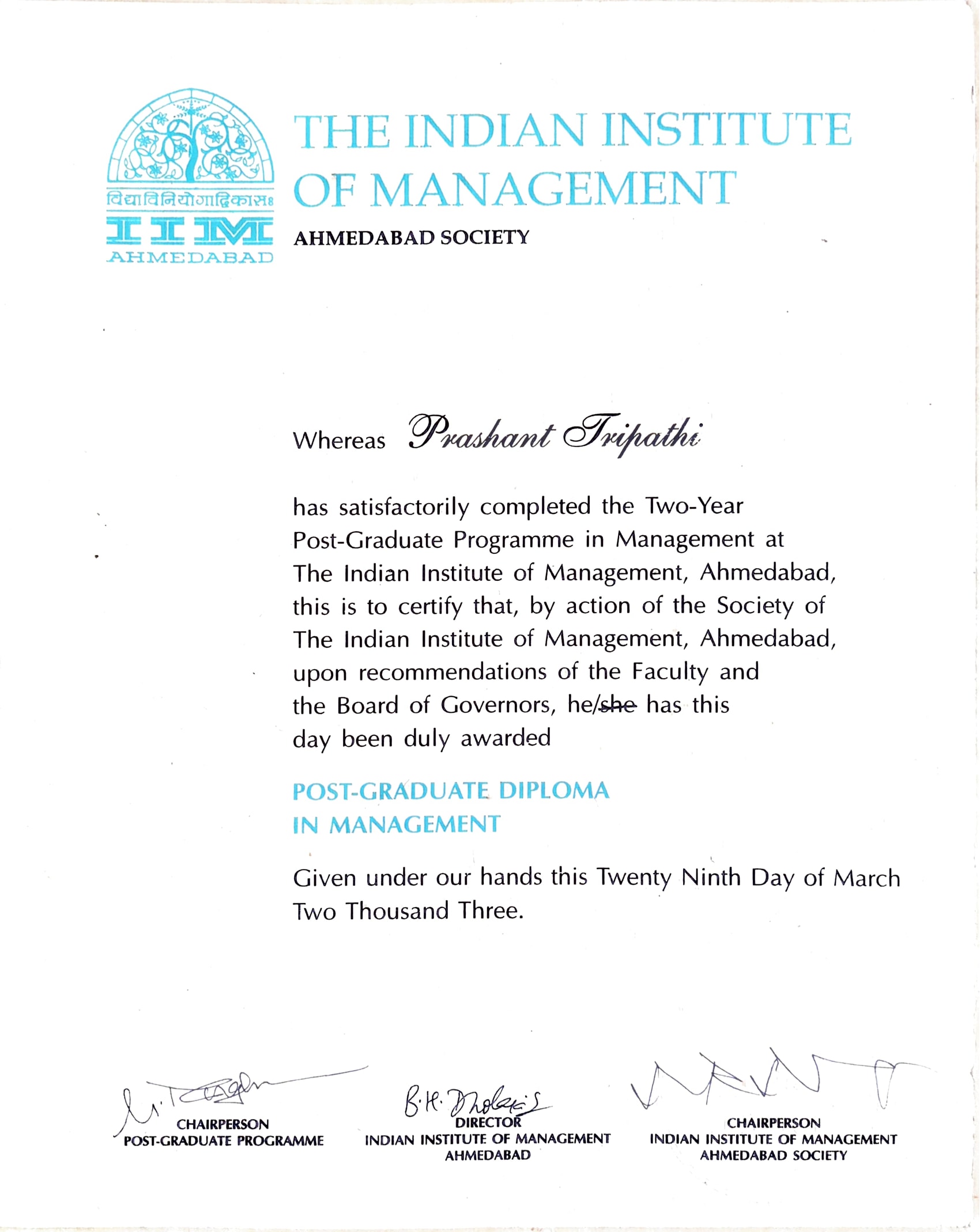 MBA from IIM AhmedabadMBA from IIM Ahmedabad29 Mar 2003 [1] [1]
