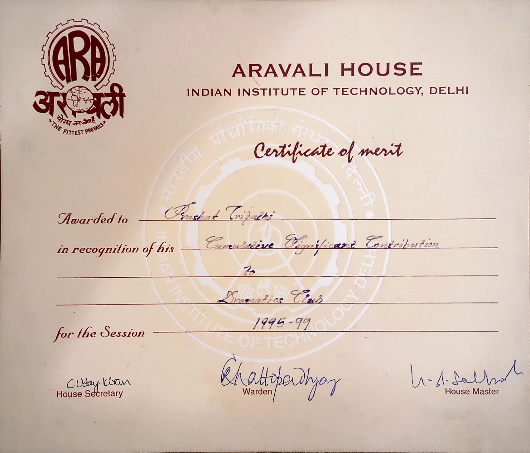 Cumulative significant contribution to Dramatics Club in 95-99 -- Aravali House, IITD.Cumulative significant contribution to Dramatics Club in 95-99 -- Aravali House, IITD.14 Aug 1999 [1] [1] [2] [2]