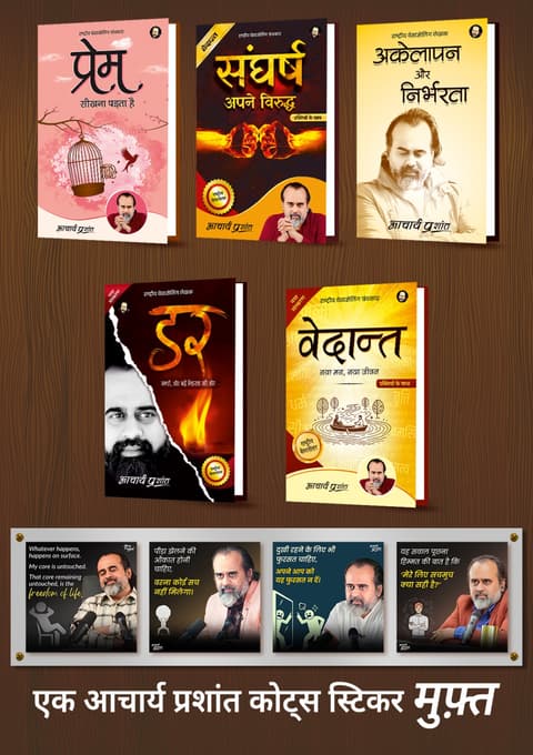 ज्वाला + संघर्ष + आज़ादी 2.0 + जानदार व्यक्तित्व + उत्कृष्टता + [1 आचार्य प्रशांत कोट्स स्टिकर मुफ़्त]