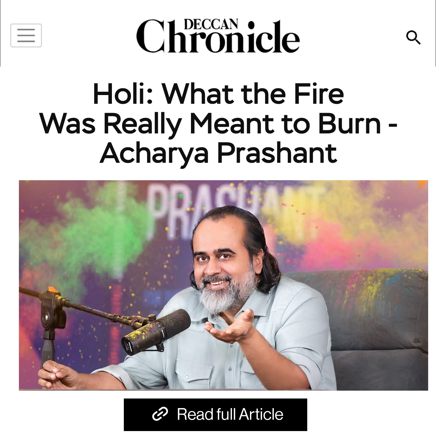 Holi: What the Fire Was Really Meant to Burn ~ Acharya Prashant's article in Deccan Chronicle
