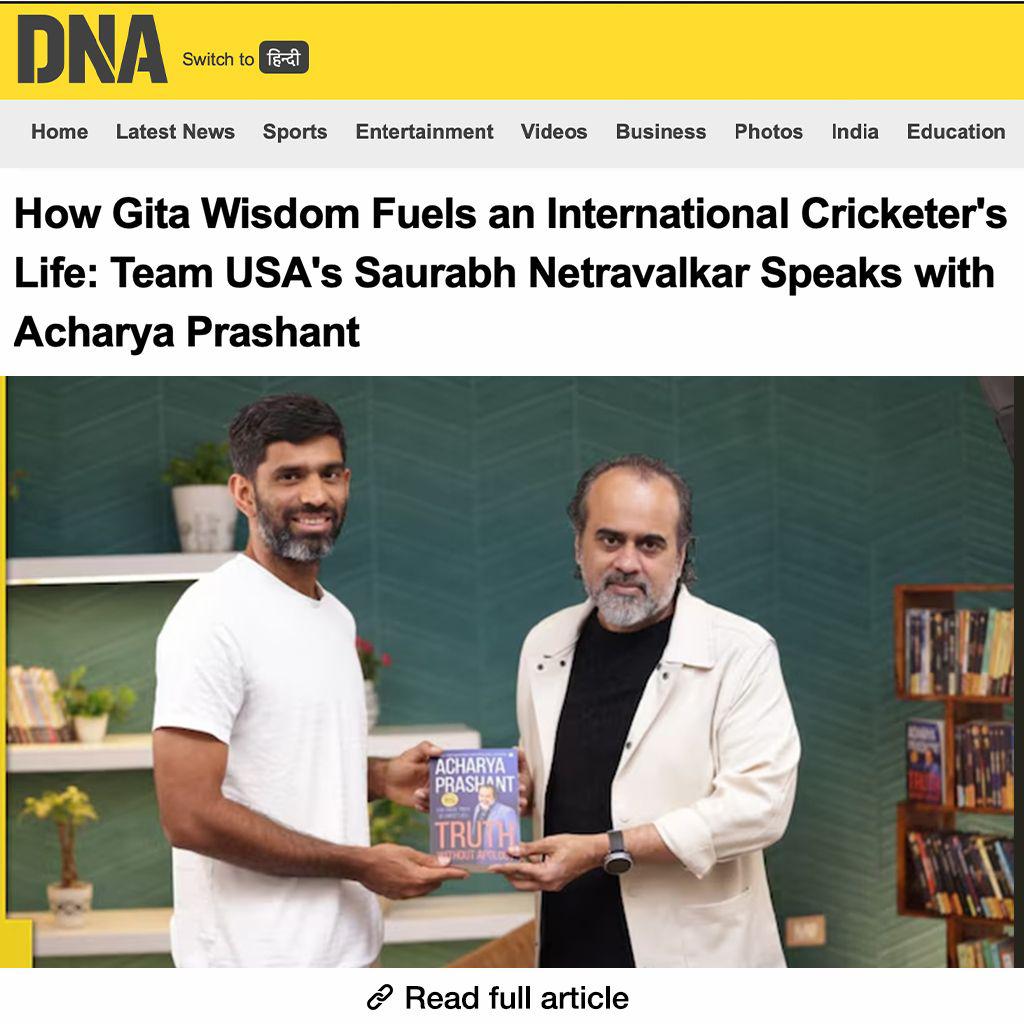 How Gita Wisdom Fuels an International Cricketer's Life: Team USA's Saurabh Netravalkar Speaks with Acharya Prashant ~ DNA India
