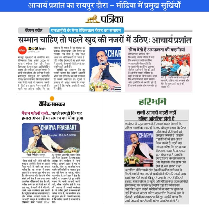 Acharya Prashant, a former corporate professional, founded Advait Life-Education to promote spirituality. He addresses youth, women, and spiritual seekers, advocating for veganism and environmental consciousness. Through self-awareness camps, literature, and social media, he transforms lives by challenging superficial beliefs and promoting deep spiritual inquiry. His mission is to create a new humanity rooted in compassion, clarity, and sustainable living, as published in the News Nation article.